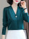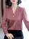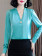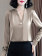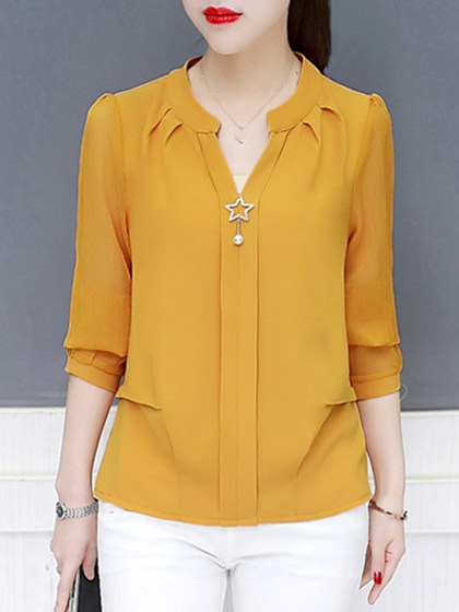V-Neck Brooch Long-Sleeved Chiffon Blouse