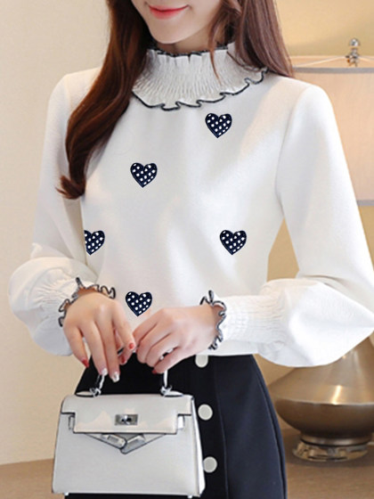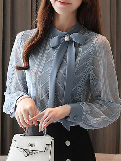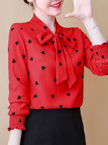 Chiffon Lace-Up Love Long-Sleeved Blouse