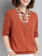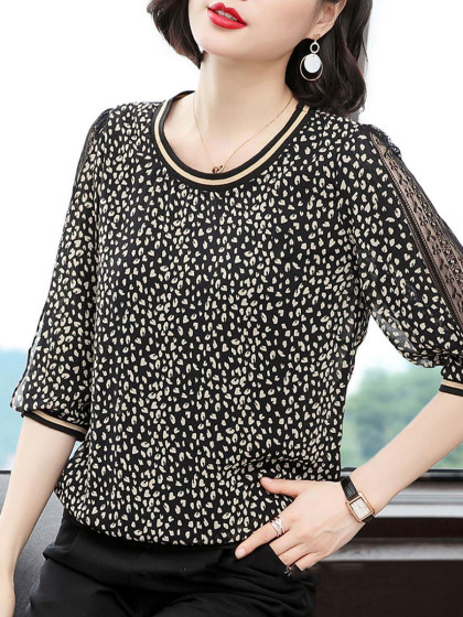 Round Neck Lace Stitching Five-point Sleeve Blouse