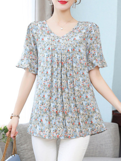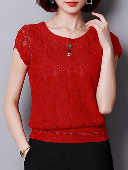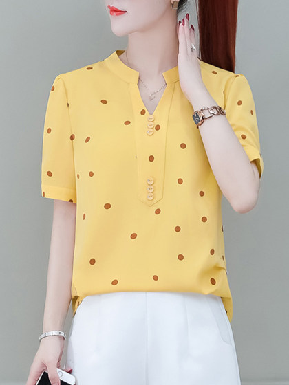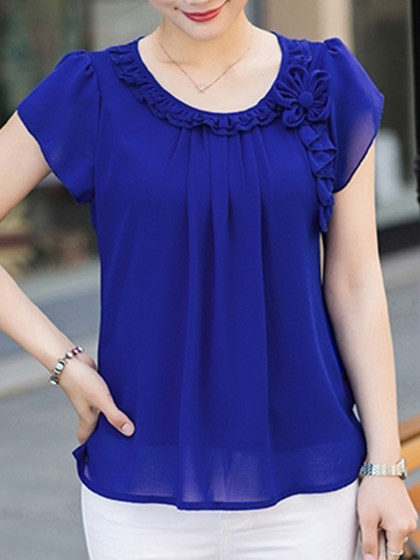 Chiffon Solid Color Round Neck Short Sleeve Shirt