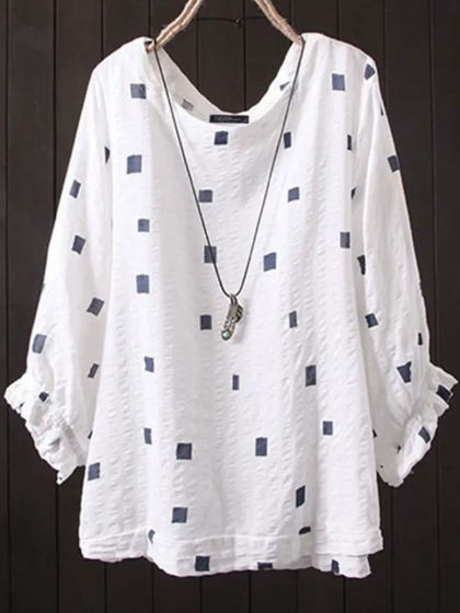 Retro Geometric Print 3/4 Sleeve Lapel Blouse