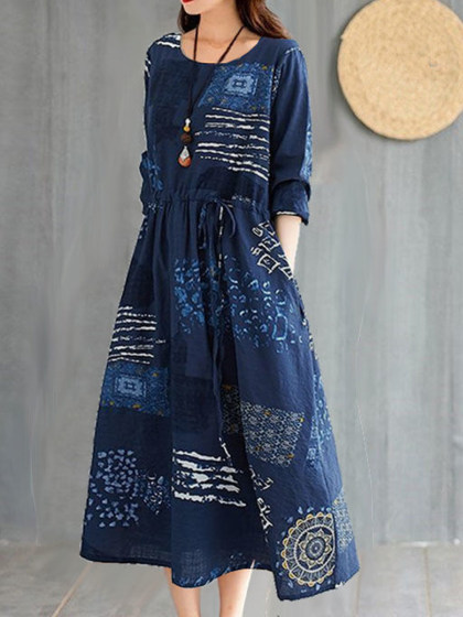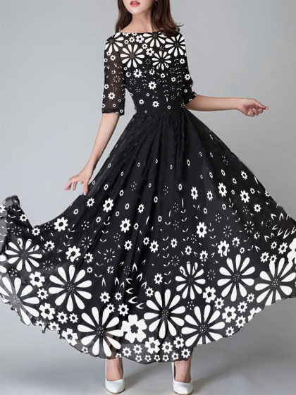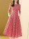 Round Neck Long Sleeve Floral Print Maxi Dress