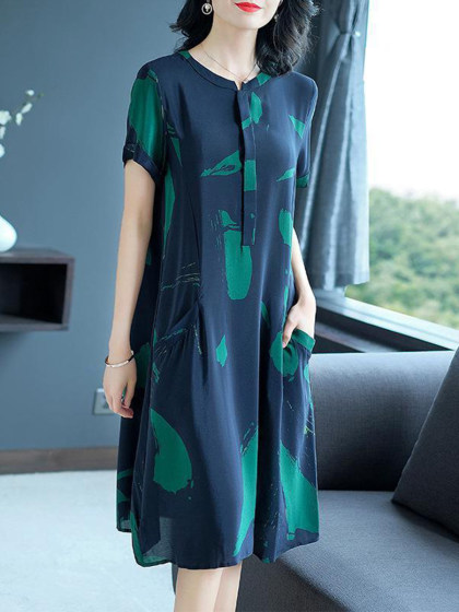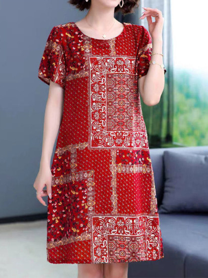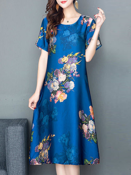 Ice Silk Plus Size Short Sleeve Shift Dress
