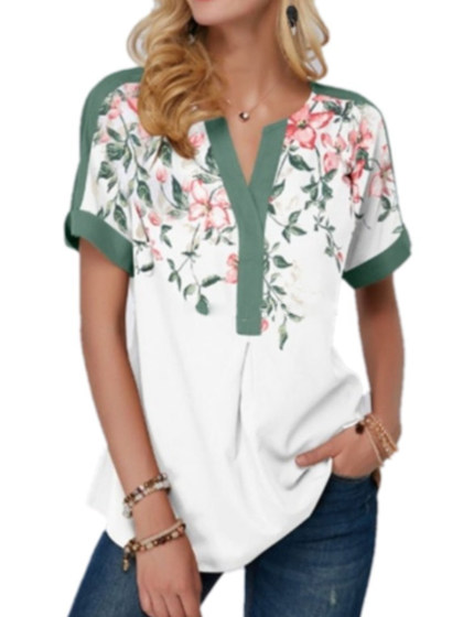 Loose Casual Floral Print Crew Neck Short Sleeves Blouse