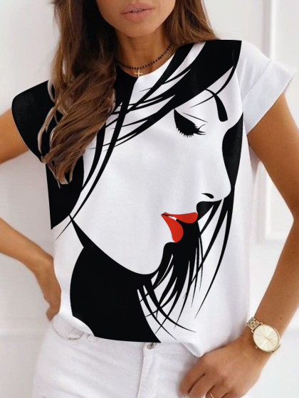 Fashion Casual Art Print Short Sleeve T-shirt Womens