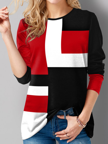 Casual Color Matching Round Neck Long-Sleeved T-Shirt