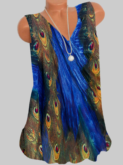 Round Neck Casual Loose Floral Print Tank Top T-shirt