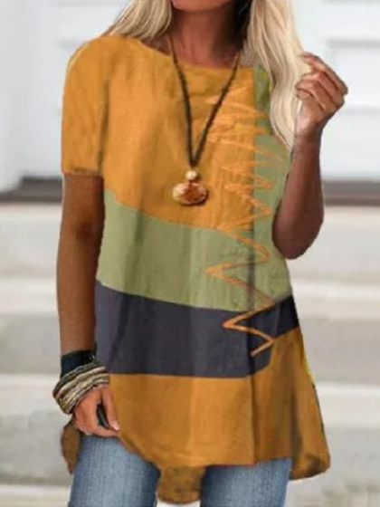 Ladies Round Neck Stitching Short Sleeve Casual T-shirt