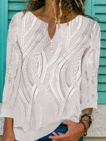 V-neck Stitching Lace Casual Loose Short-sleeved T-shirt