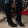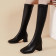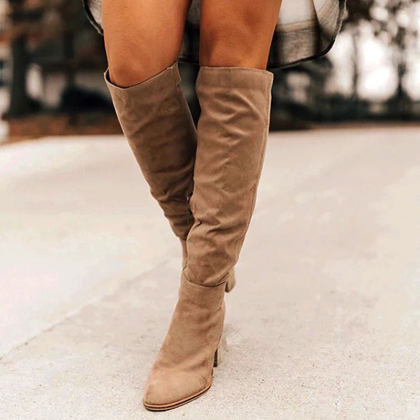 Plain Chunky High Heeled Velvet Point Toe Outdoor Knee High Heels Boots