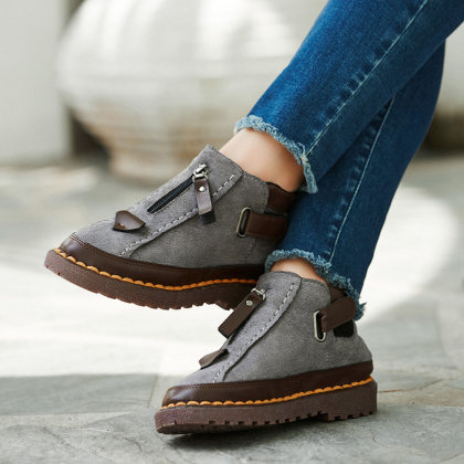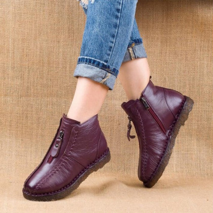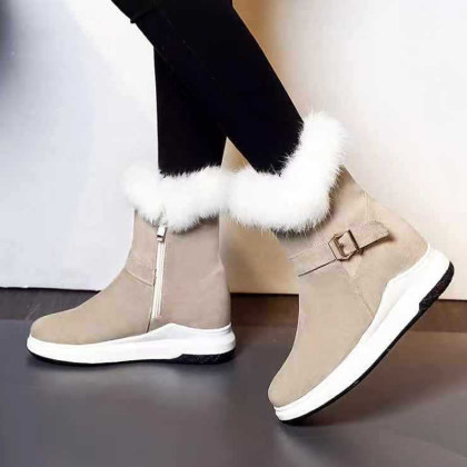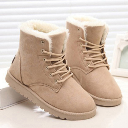 Plain Flat Velvet Round Toe Date Outdoor Short Flat Boots