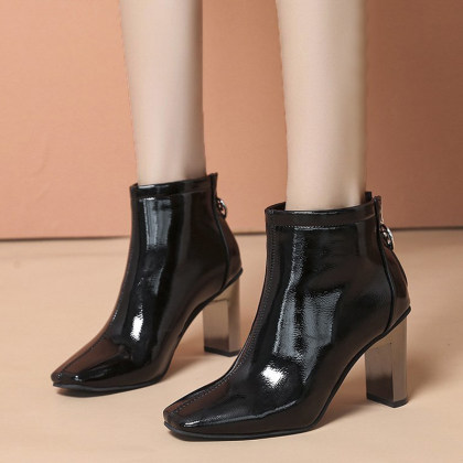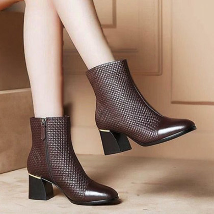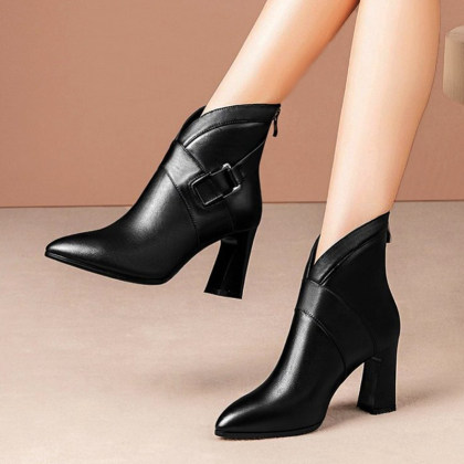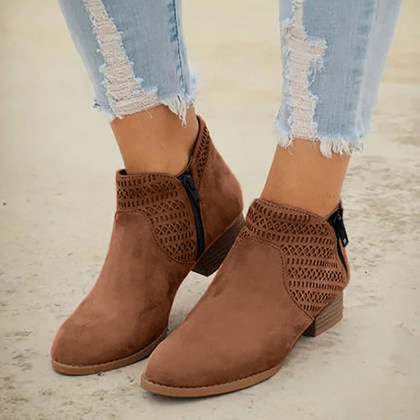 Hollow Out Plain Chunky Low Heeled Velvet Point Toe Date Outdoor Ankle Ankle Boots