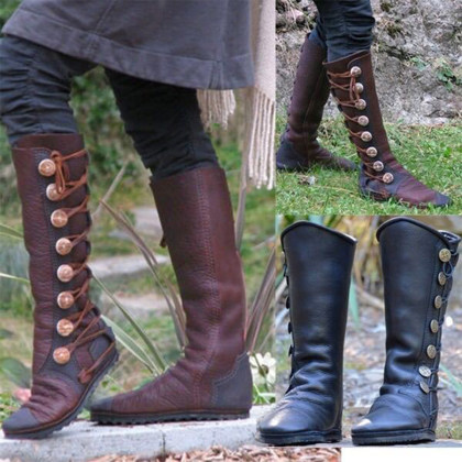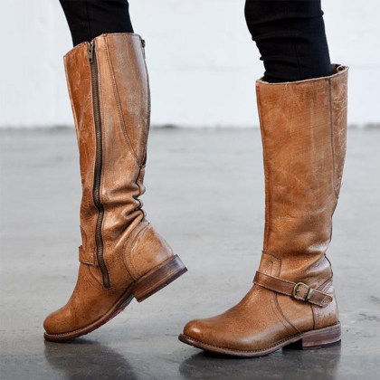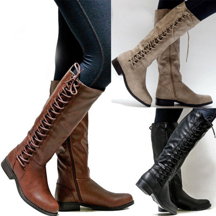 Plain Flat Round Toe Date Outdoor Knee High Flat Boots