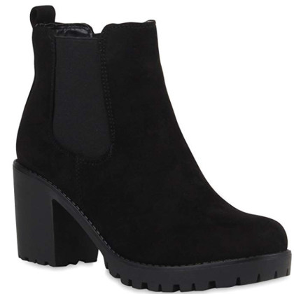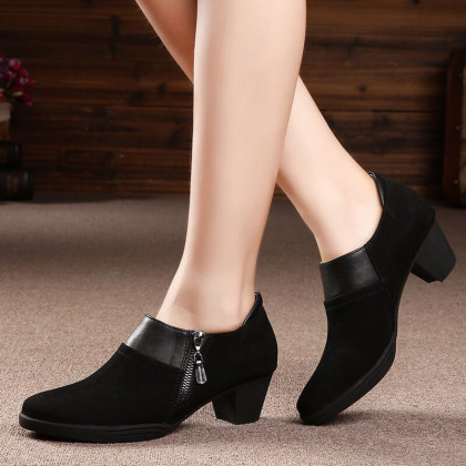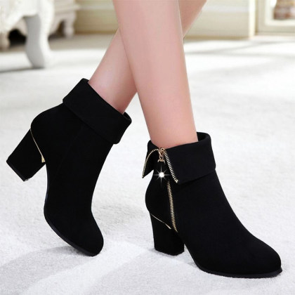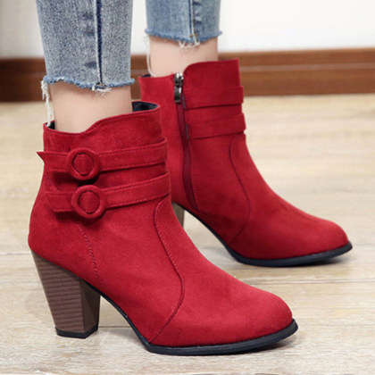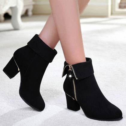 Plain Chunky High Heeled Velvet Round Toe Date Outdoor Short High Heels Boots