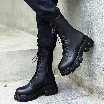Plain Flat Round Toe Casual Date Mid Calf Flat Boots