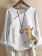 Fawn Print Round Neck Cotton And Linen Long Sleeve Blouse