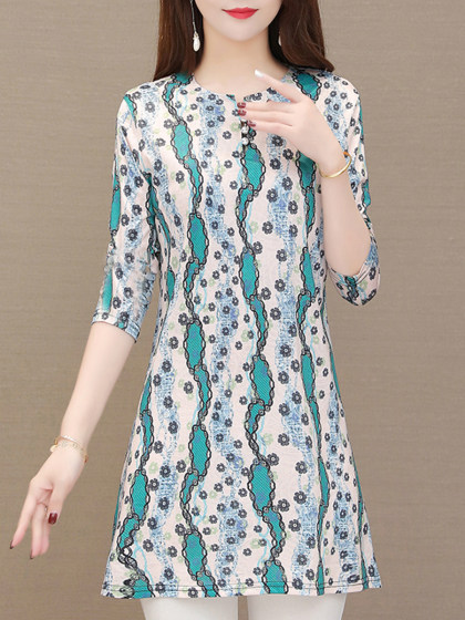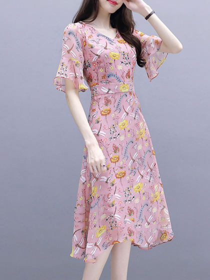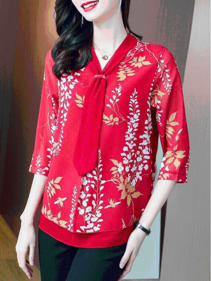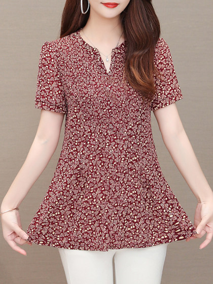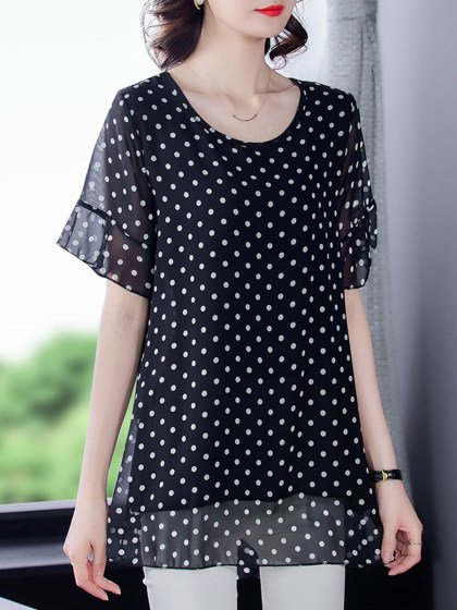 Chiffon Printed Puff Sleeve Short Sleeve Shirt