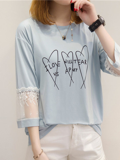 Round Neck Lace Stitching Short-sleeved T-shirt