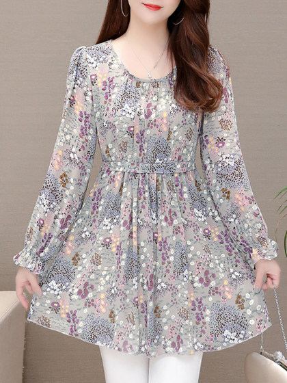 Chiffon Printed Puff Sleeve Long Sleeve Blouse