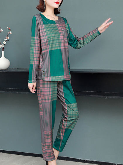 Round Neck Color Block Short-sleeved Wide-leg Pants Suit