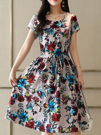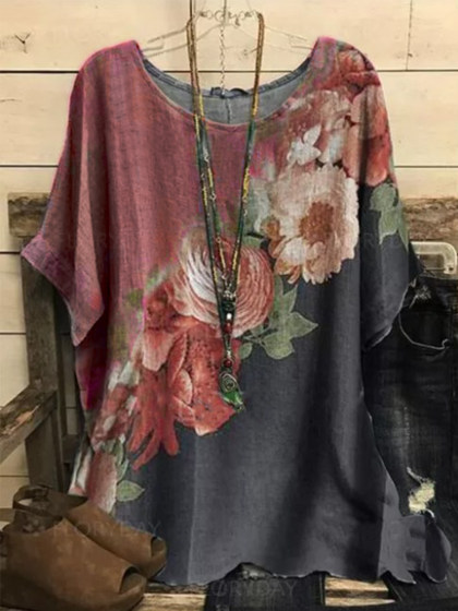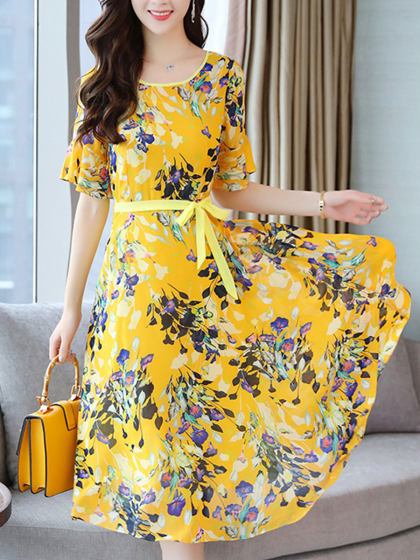 Round Neck Short Sleeve Printed Lace Stitching Printed Suit