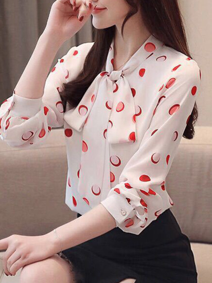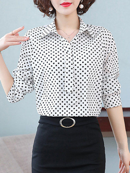 Chiffon Polka Dot Lace Long Sleeve Blouse