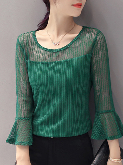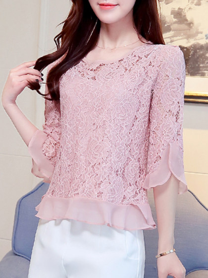 Lace Chiffon Stitching Lotus Leaf Sleeve Blouse